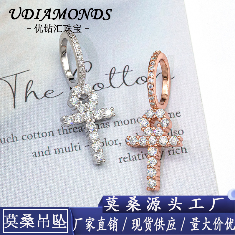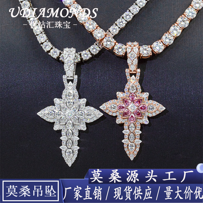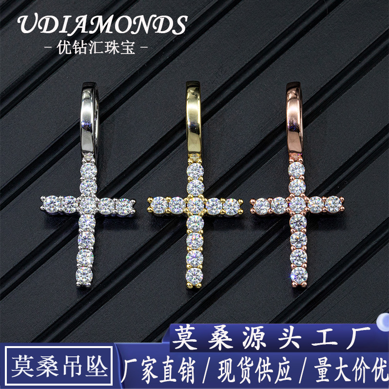 Udiamond 2025年新型花式クロスペンダントS925銀莫桑石は6.5mmテニスチェーンを着ることができます。