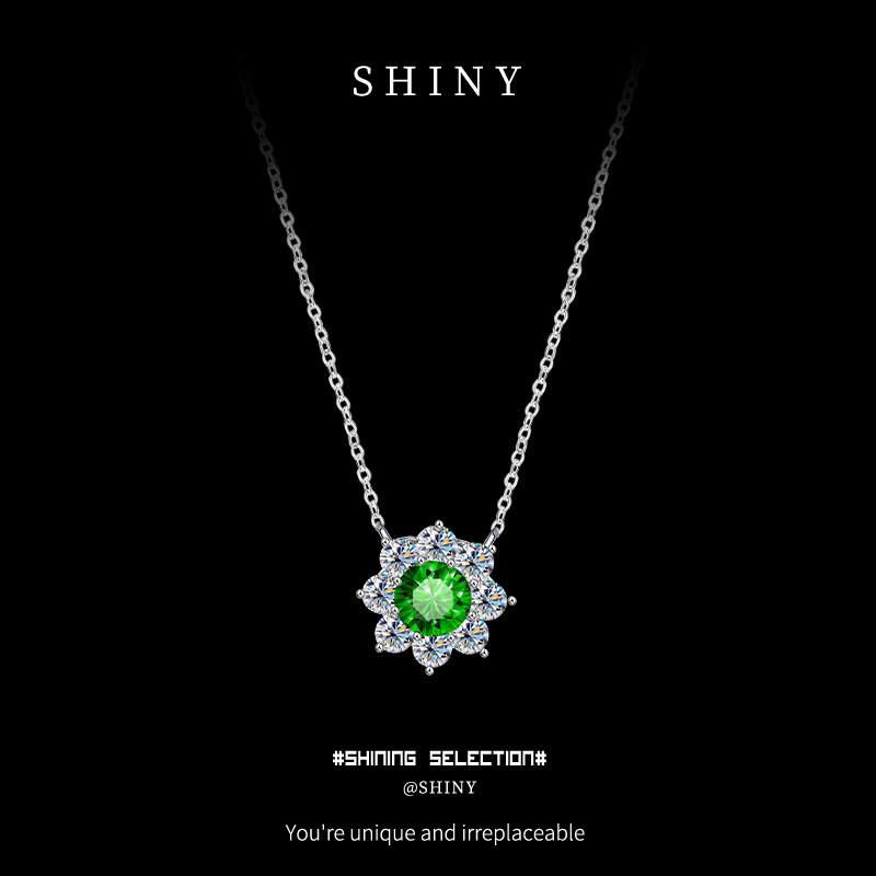 新商品s 925純銀欧米日韓百合翠緑莫桑石ネックレス
