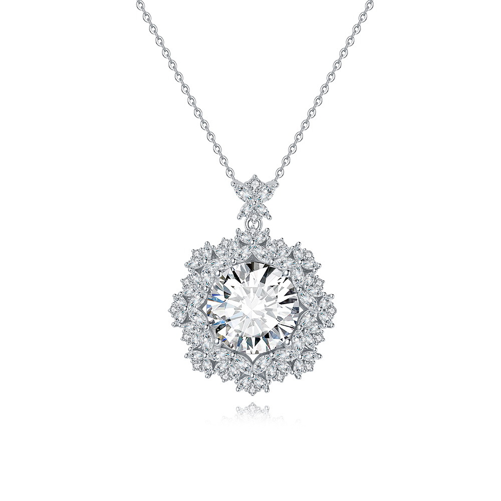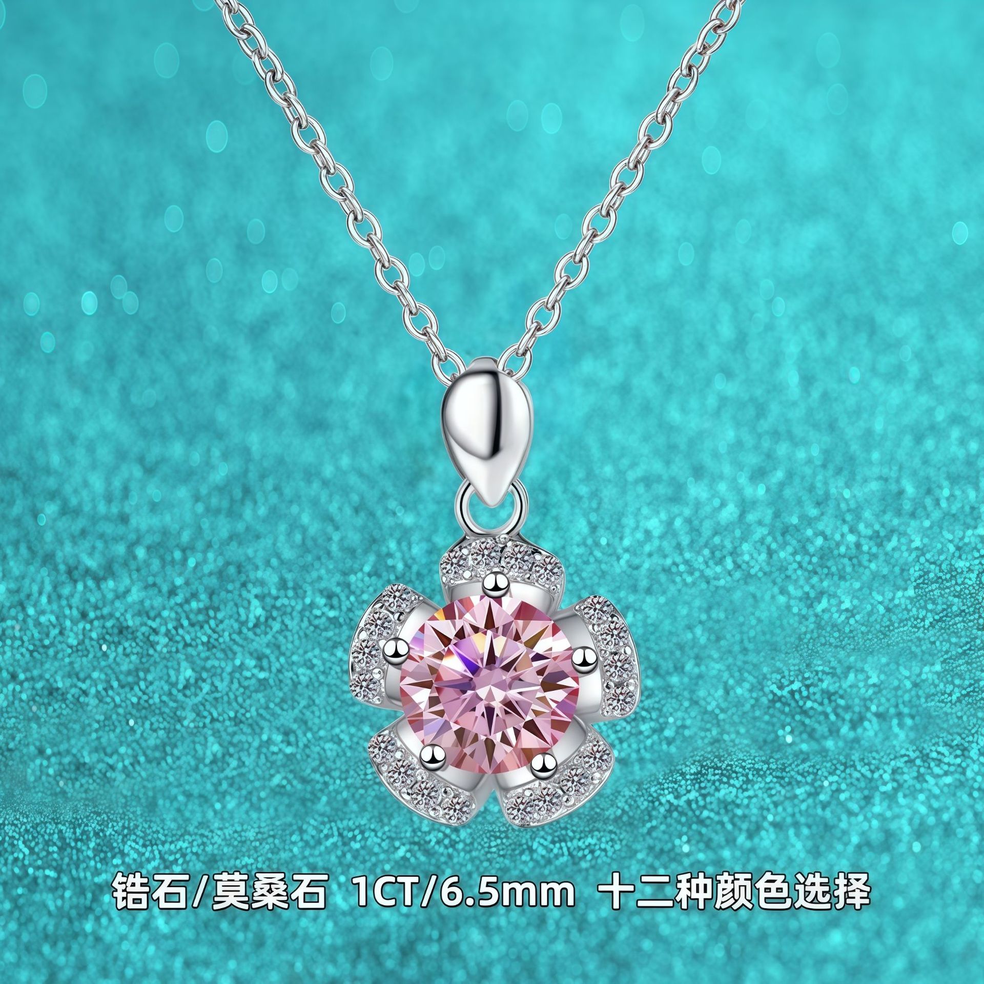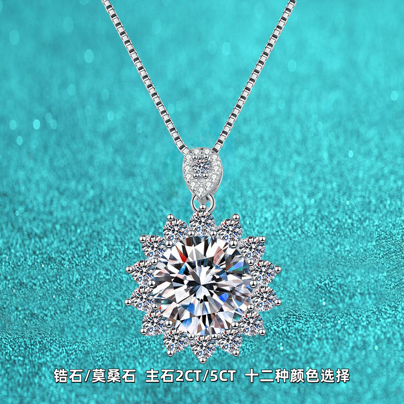 ひまわりネックレスクロスボーダーs925シルバーシルバーD色莫桑石ペンダント軽豪華花1カラット太陽花ネックレス