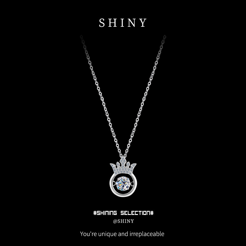 キラキラ光る銀飾りS925純銀モザイク莫桑王冠ペンダントクロスボーダー電気商専売高級感軽贅沢ネックレス