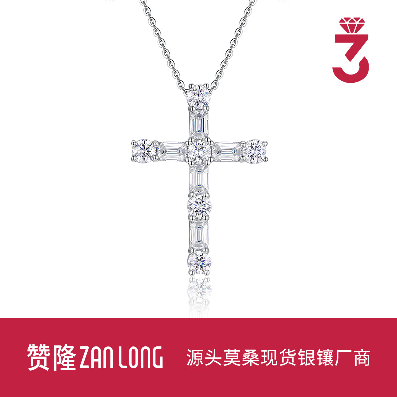 925Sにモアサナイトを象嵌したクロスペンダント、軽やかな高級感、華やかでファッショナブルな18Kメッキ、多用途ジュエリー