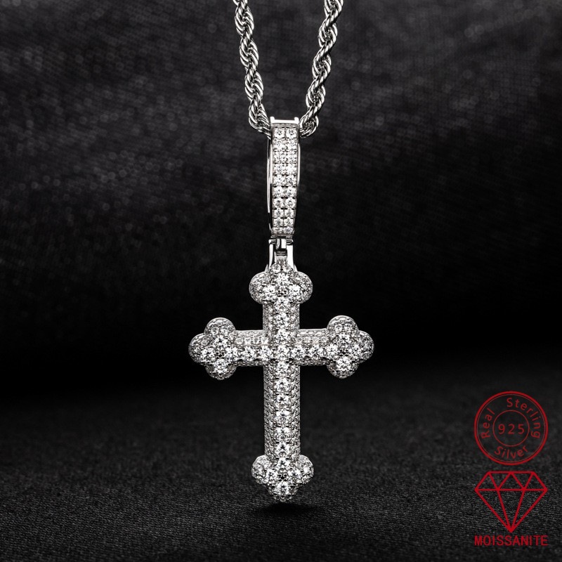 ハイエンドのファッショナブルなスターリングシルバー象嵌モアッサナイトクロスフルダイヤモンドペンダントヒップホップヨーロッパとアメリカの個性男性と女性のクラシックで多用途