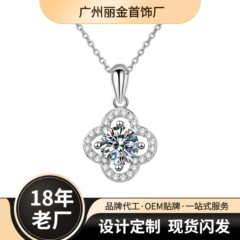 925純銀四葉草ネックレス霊動莫桑石五葉花ペンダント鎖鎖女太陽花ネックレス首鎖