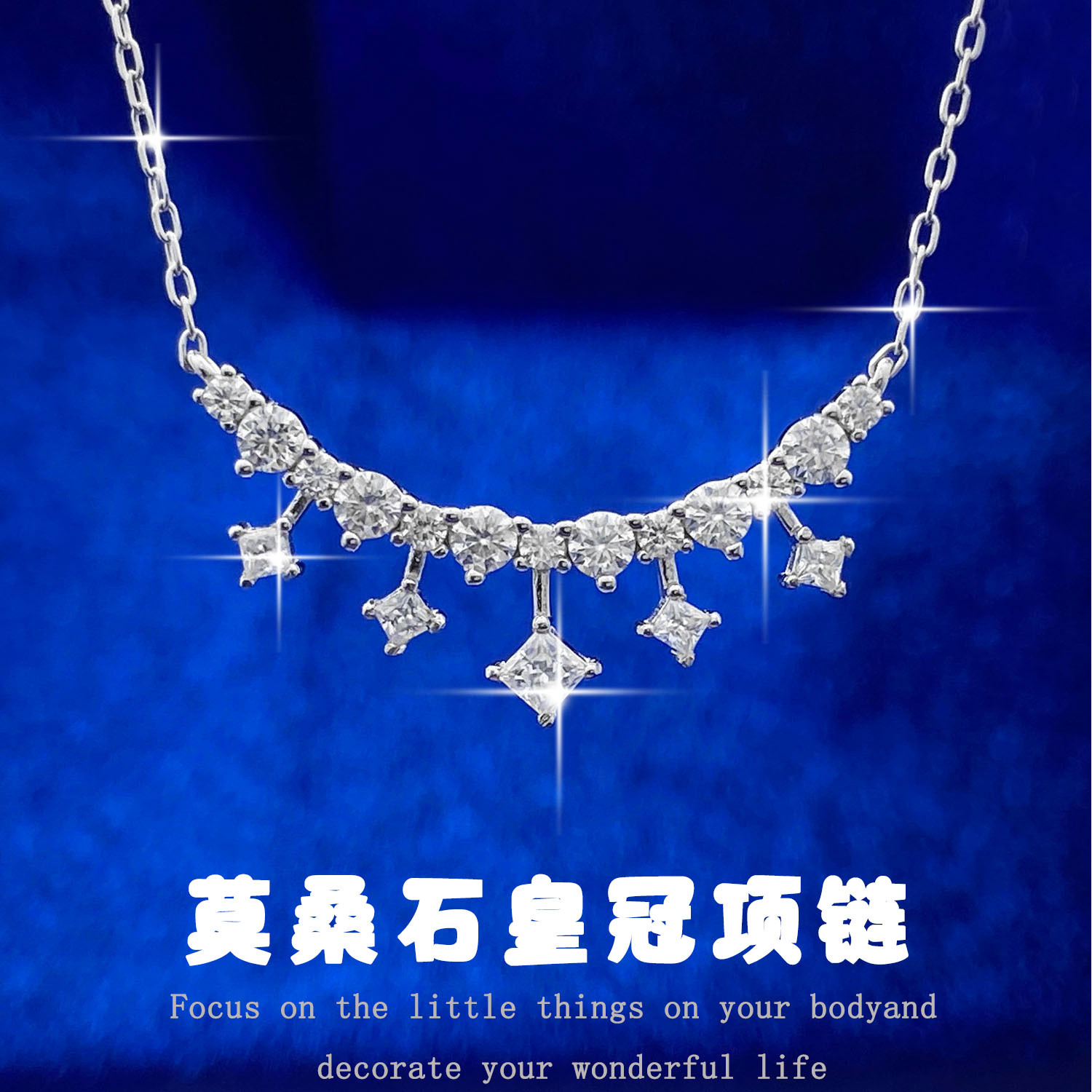 S925シルバークラウン王妃アイリスペンダントモザンストーンネックレス高级感1カラットD色モザンストーンネックレス