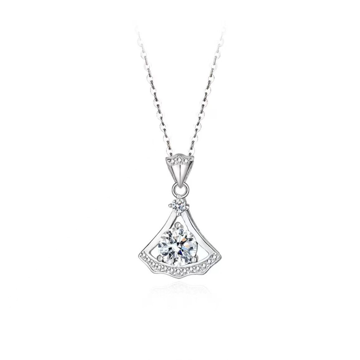 新しい925純銀の莫桑石の小さいスカートのネックレスの女性の軽くて豪華なファッションの高級感の女性のペンダントの鎖の鎖のバッチ