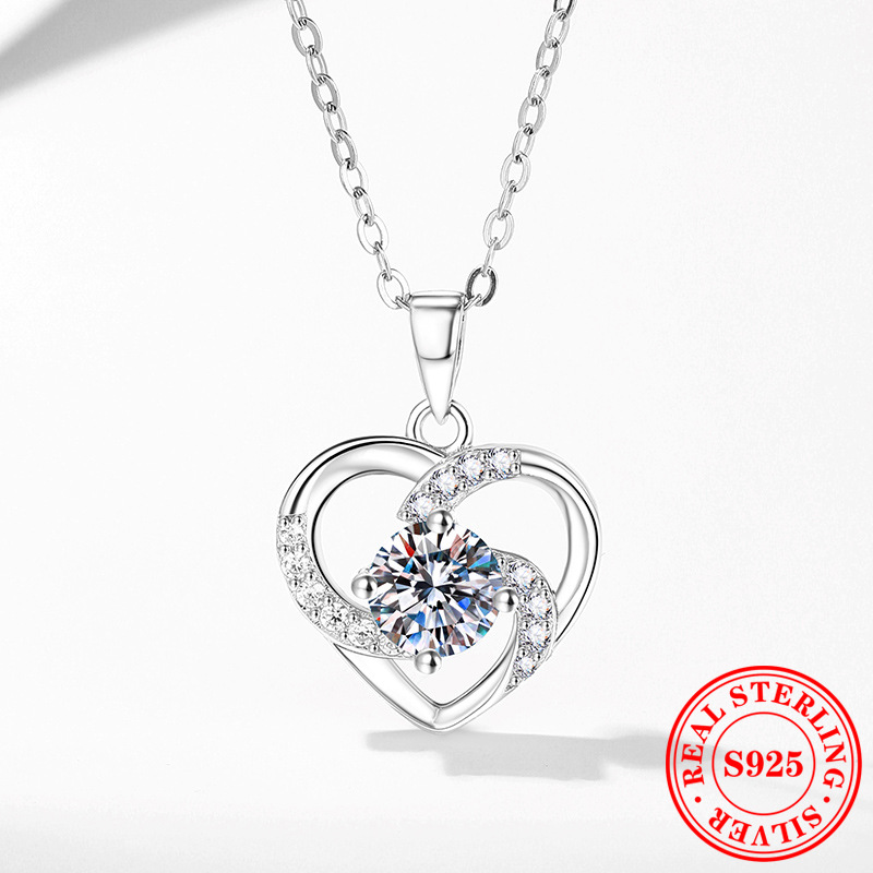 S925純銀永遠の心ペンダント愛ネックレス莫桑石鎖骨鎖彼女七夕バレンタインデープレゼント