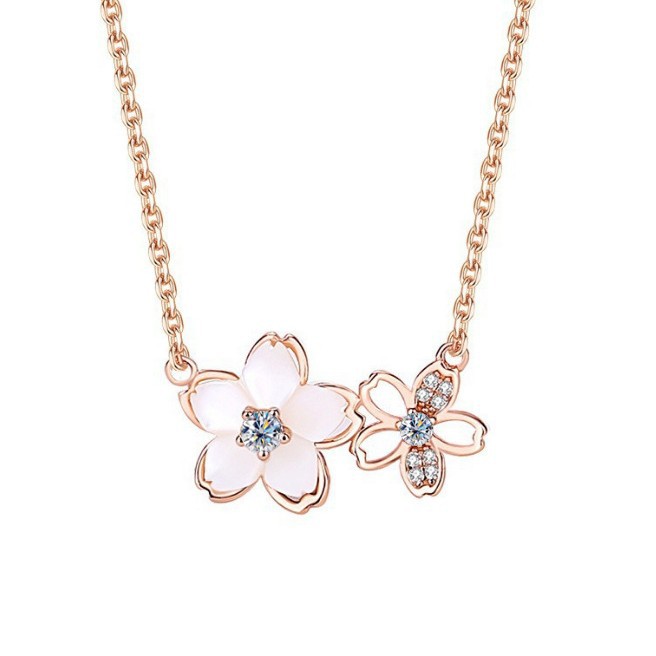 純銀S925莫桑石の新型の爆発的な桜のネックレスの女性の鎖のシンプルな気質の軽い贅沢な設計感の首の鎖