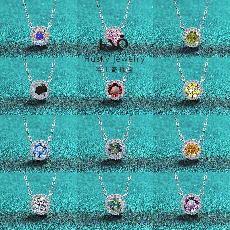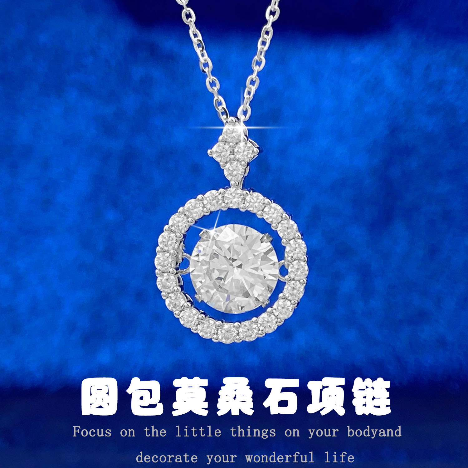 直播爆金s925純銀ペンダント鎖骨鎖莫桑ドリルネックレスクラシックシンプル1カラットD色莫桑ネックレス