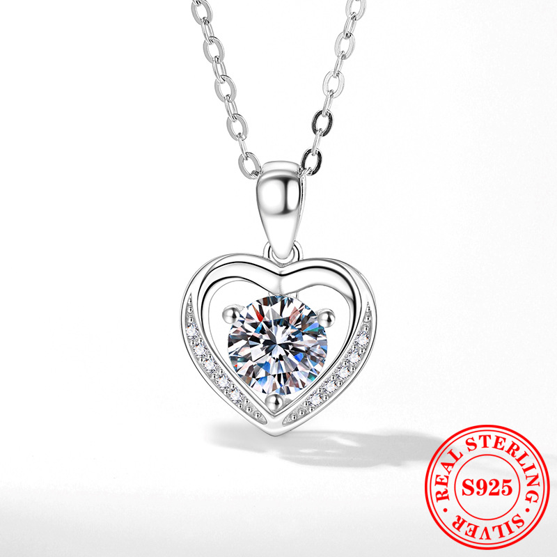 アマゾンの人気S925純銀ハート型莫桑石ネックレス女性愛異形贅沢感工場の卸売り