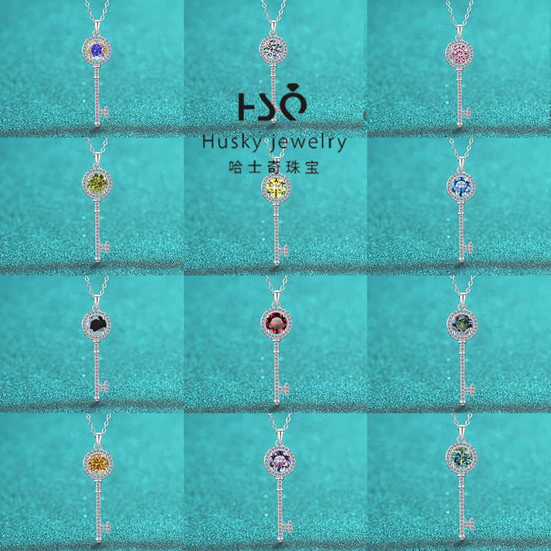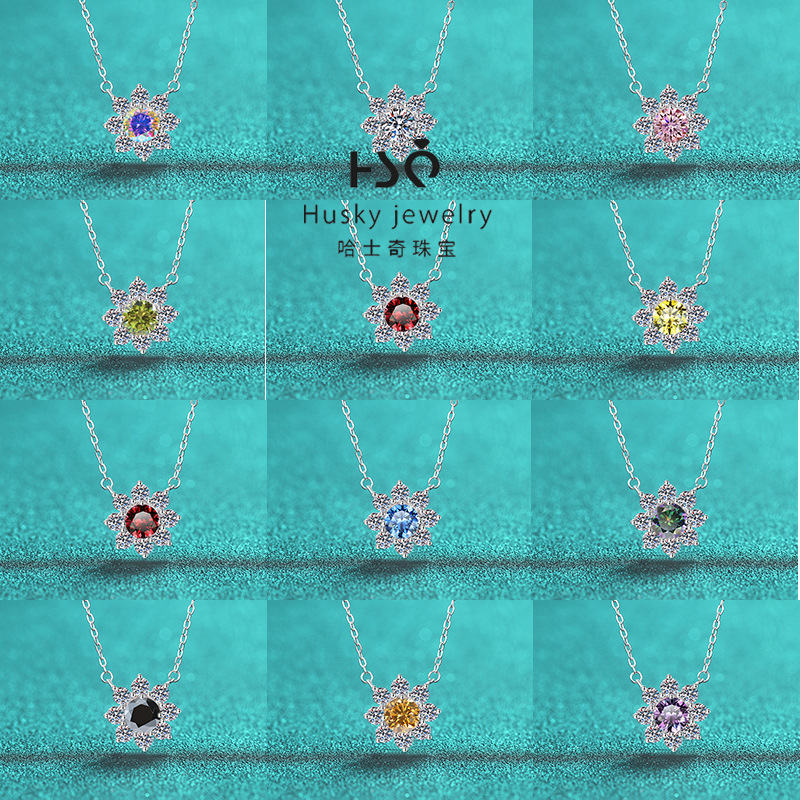 十二生辰石ネックレス高級感純銀S925鎖骨鎖シンプル気質風スポットクロスボーダー卸売り銀飾り