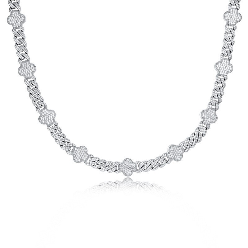 S925銀ヒップホップ満ドリルファッション四葉草ひし形スキューバチェーン莫桑石ネックレス百合アクセサリー男性ネックレス