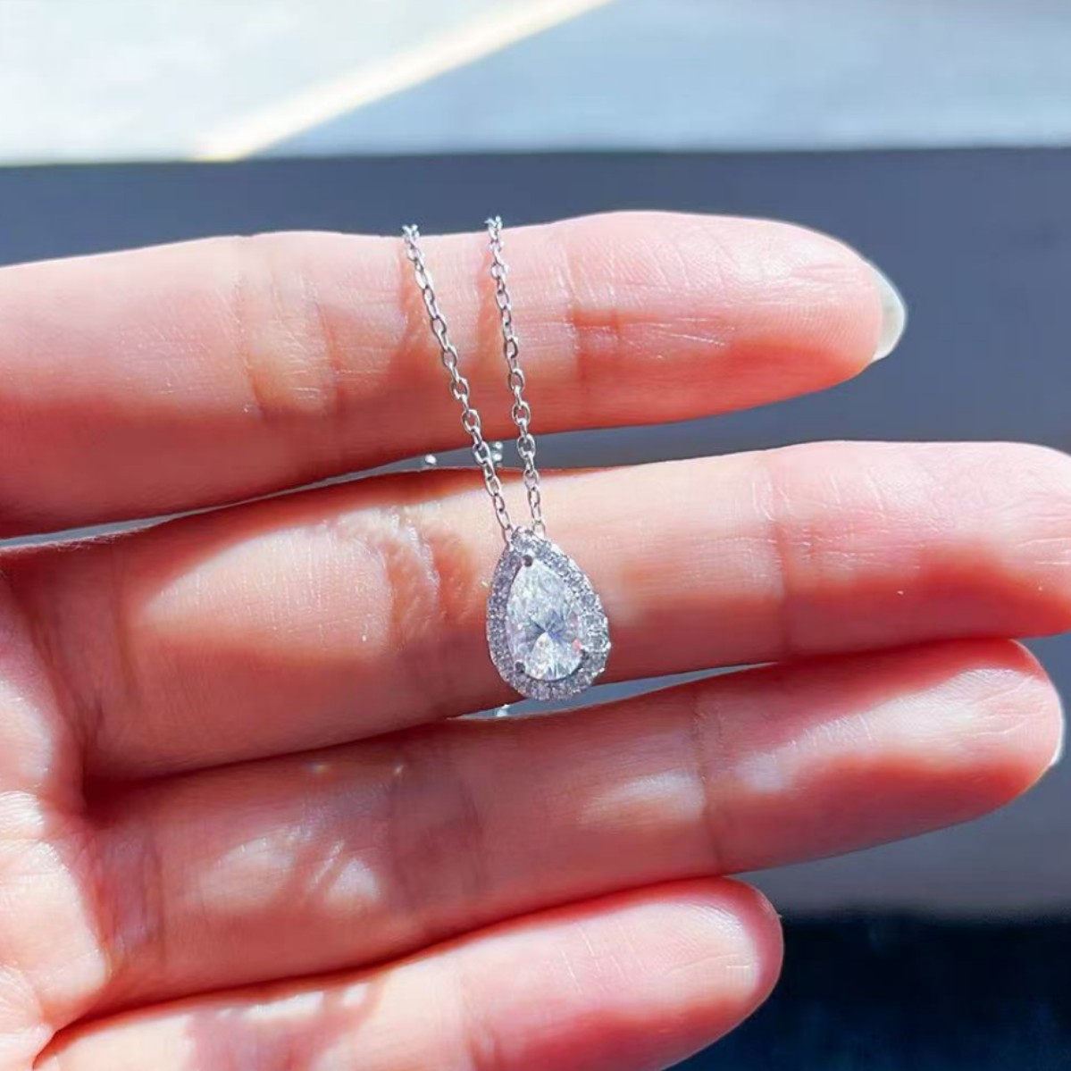 洋梨型モアッサナイトS925スターリングシルバーメッキ18Kホワイトゴールド、パーソナライズされたファッショナブルで多用途、トレンディでクラシックなインターネットセレブペンダントネックレス