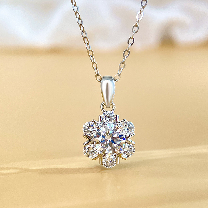 純銀925 ロマンチックな雪の結晶モアサナイト1カラットネックレス レディース 多用途ペンダント エレガントでシンプルで高級感のある鎖骨チェーン