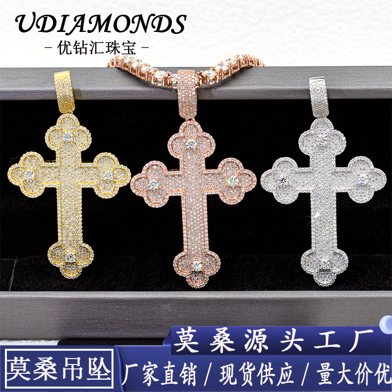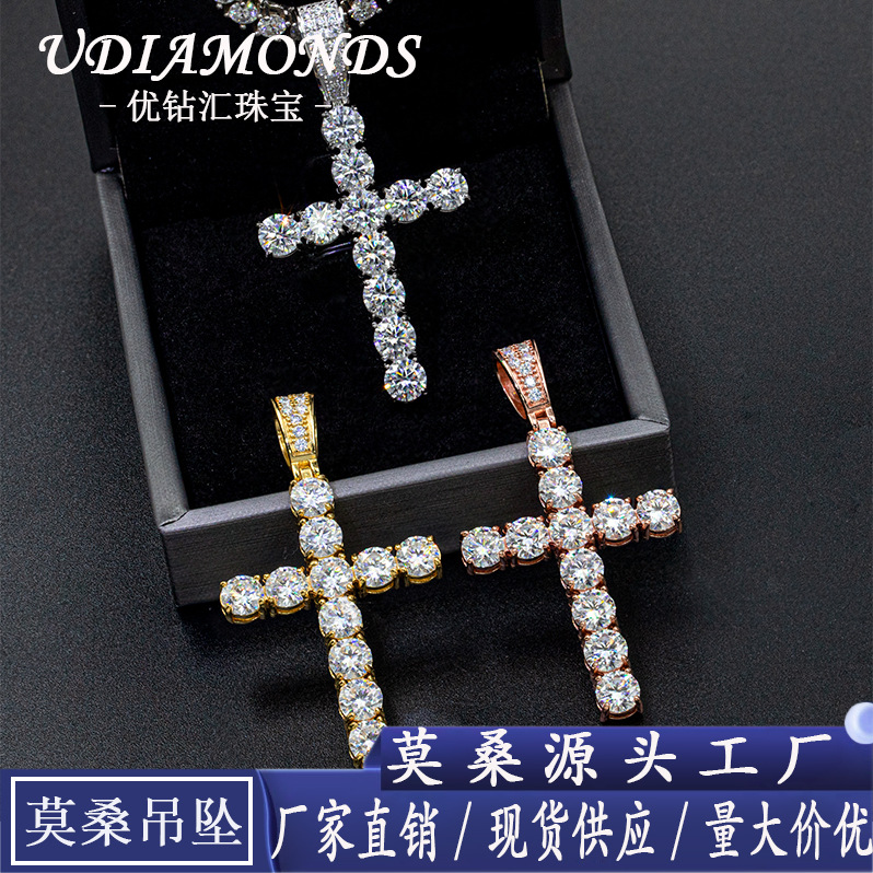 人気ヒップホップ6mm925銀はD色のモザンクロスのペンダントのネックレスのアクセサリーをつけて、一つの石のチェーンを通り抜けることができます。