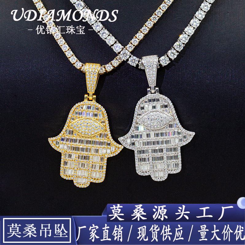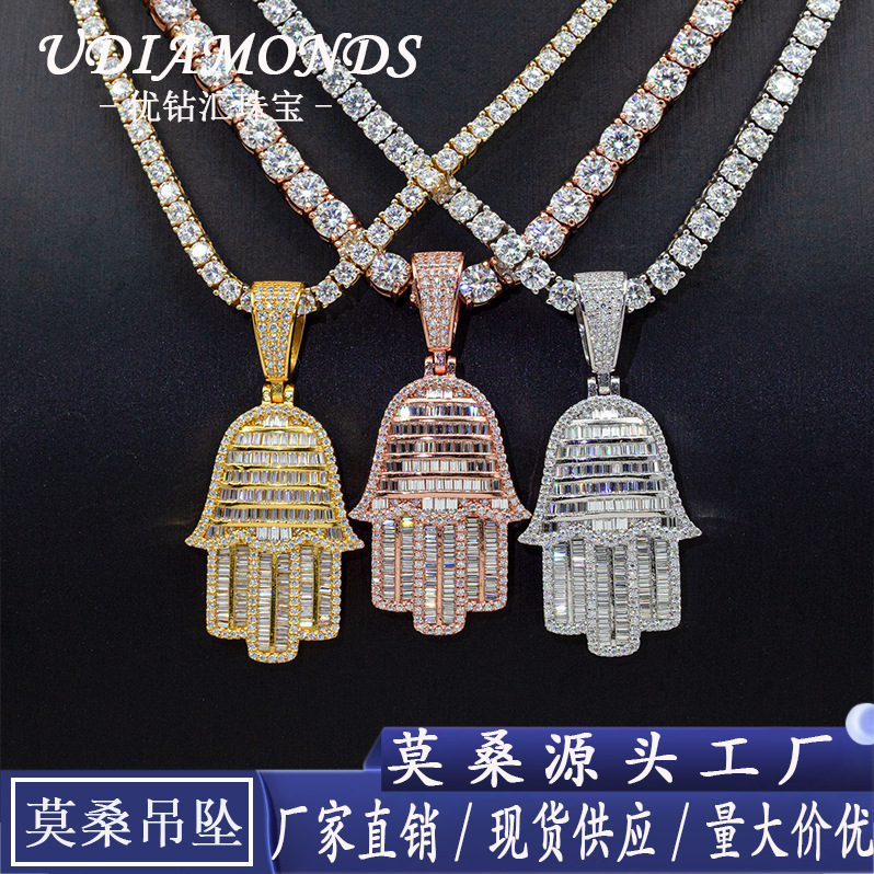 メーカー卸売りの新型男女莫桑石ヒップホップペンダント925銀手のひらペンダントは、単一の石テニスを通り抜けることができる