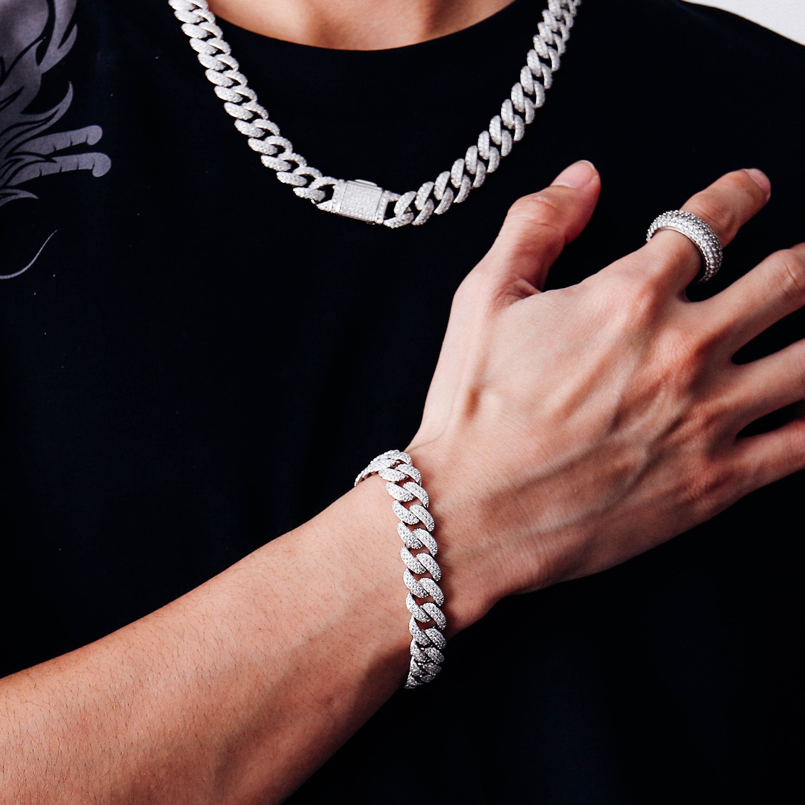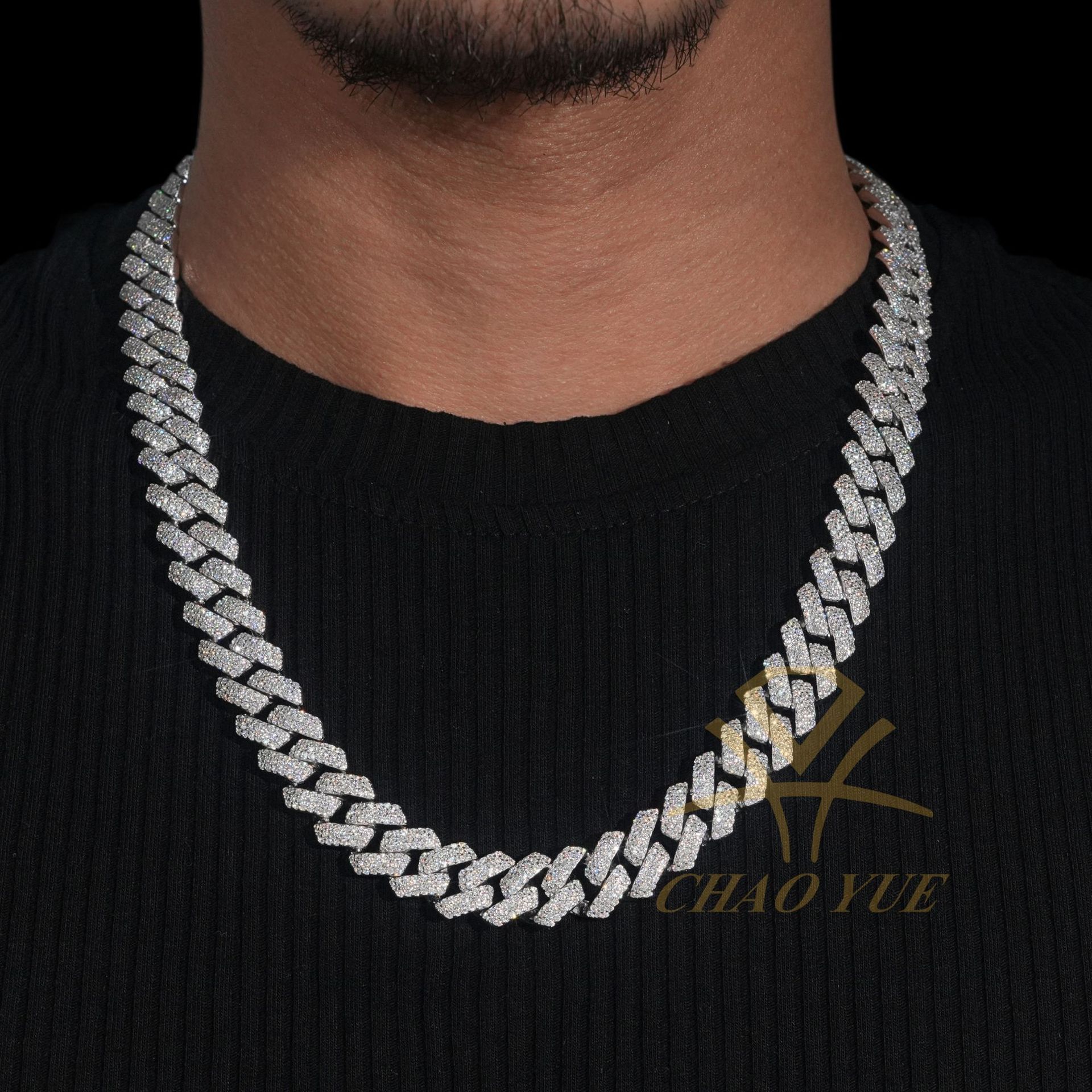 新しい人気14mm三列石ヒップホップスキューバネックレス925銀vvs莫桑石欧米男性鎖骨ネックレスブレスレット