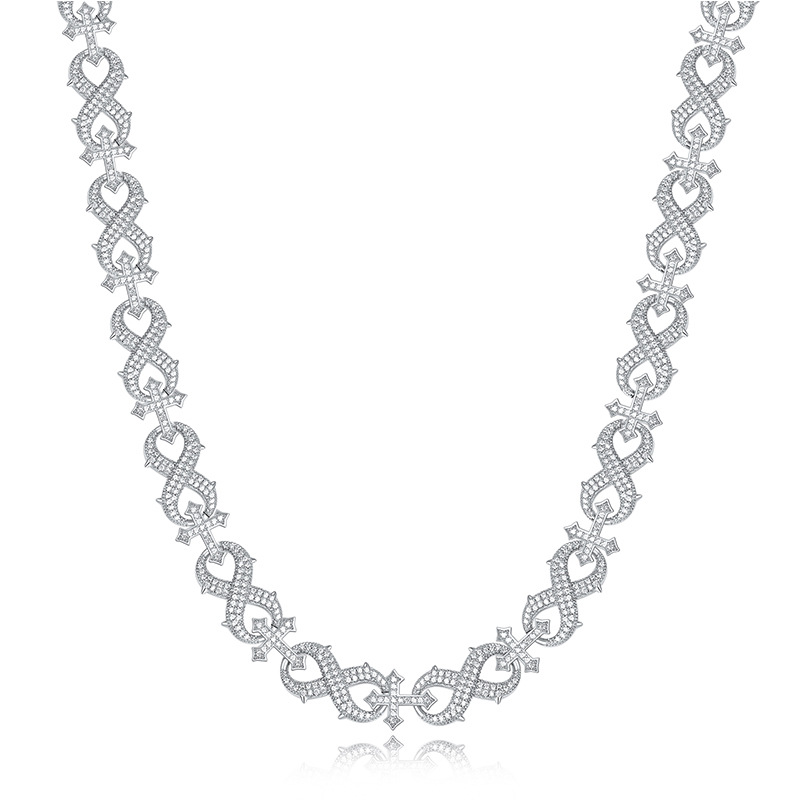 S925銀欧米ヒップホップ8字いばらクロスクロススキューバチェーン満莫桑ドリルネックレスDIYデザイントレンドネックレス