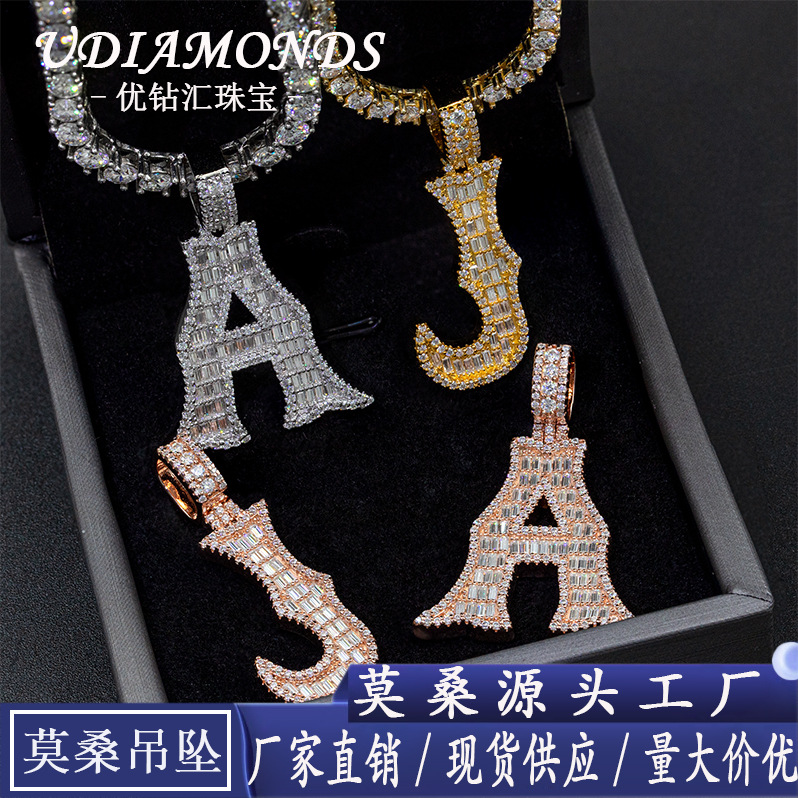 人気の新しい文字Mヒップホップペンダント925銀莫桑石GRA証明書潮牌ペンダントはドリルペンを測定することができる