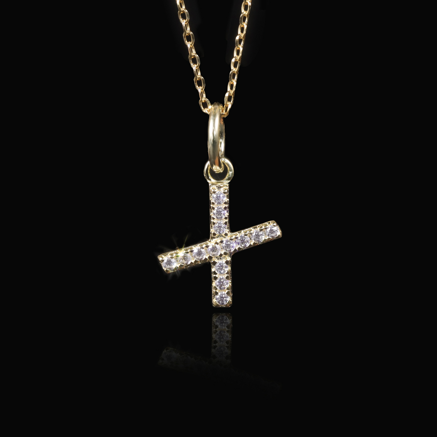 クロスボーダー英語文字Xネックレス金色s925純銀モザイク石ペンダント26文字鎖鎖男女