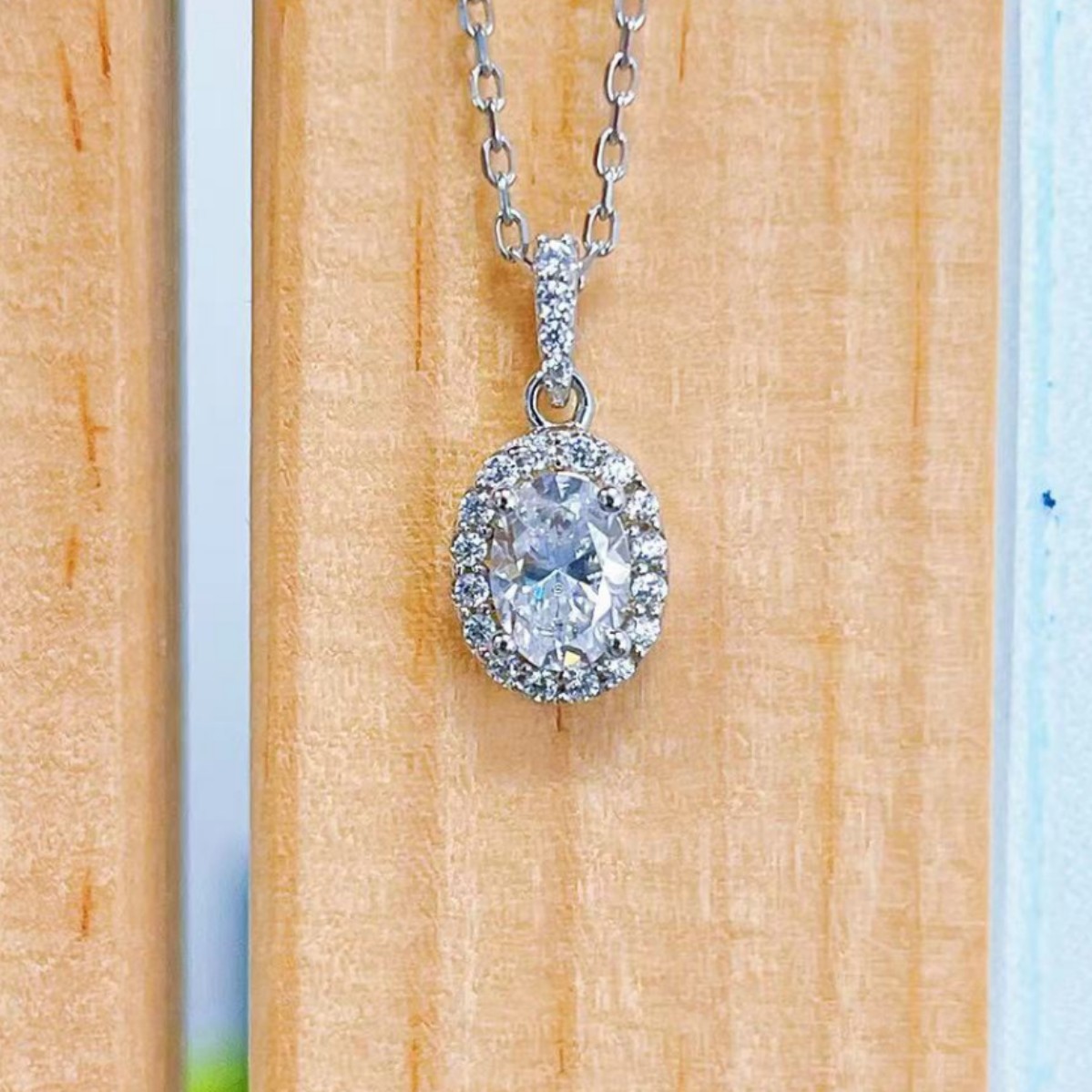 S925シルバーメッキ18kゴールド1カラモサン石実力工場卵形ペンダントネックレスD級VVSセイコー現物