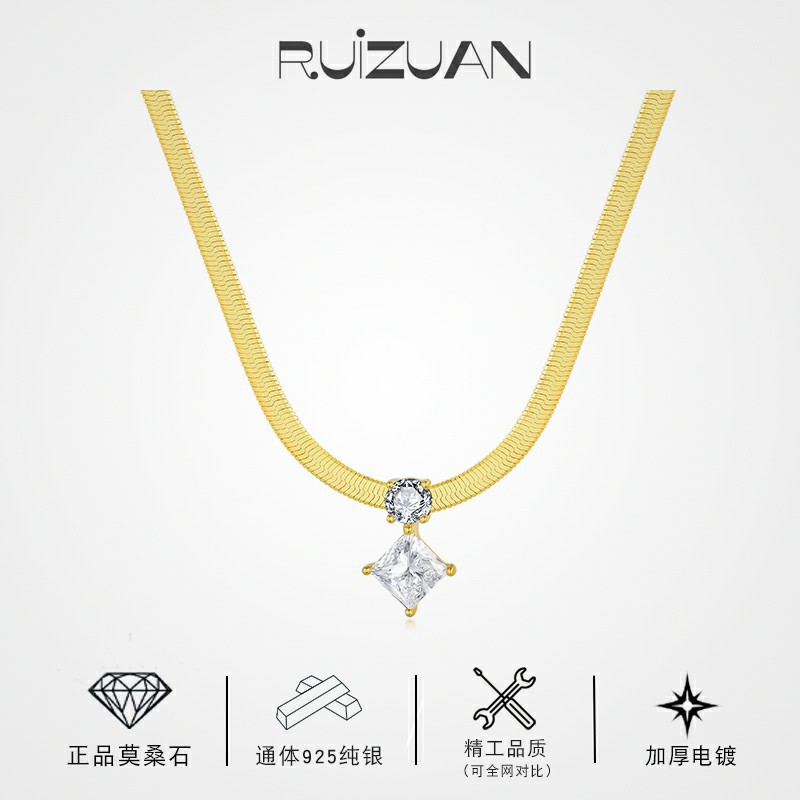 国境を越えた欧米の軽豪華な莫桑石王女方1.5カラット平蛇骨ネックレスギャルファッション925銀鎖骨鎖