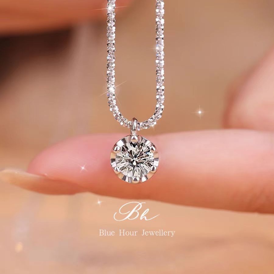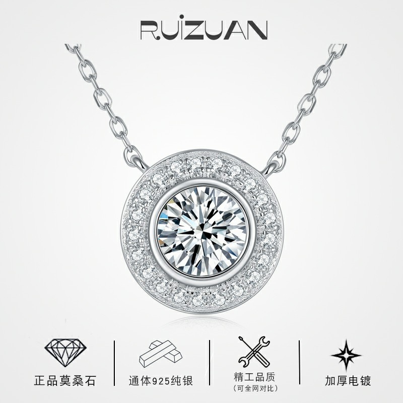 円形莫桑石2カラットネックレス女性日韓百合新S925銀円包1カラットペンダント鎖骨首鎖