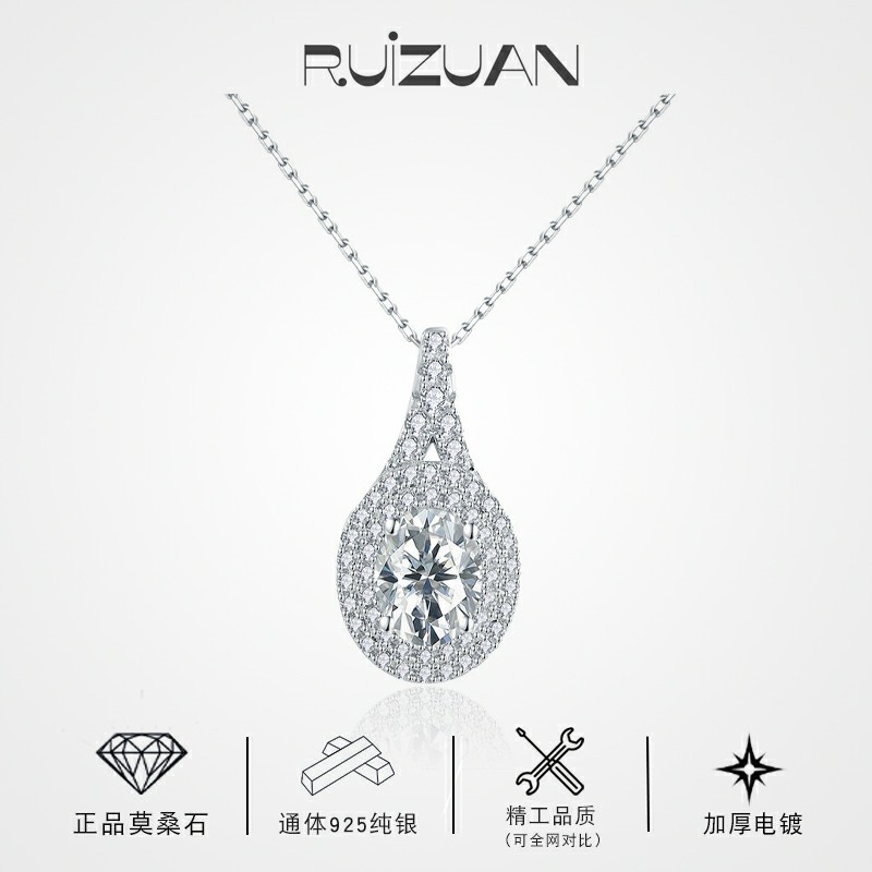 S925純銀莫桑石ネックレス天使の涙ペンダントクラシックジュエリー日韓ファッションダイヤモンド鎖