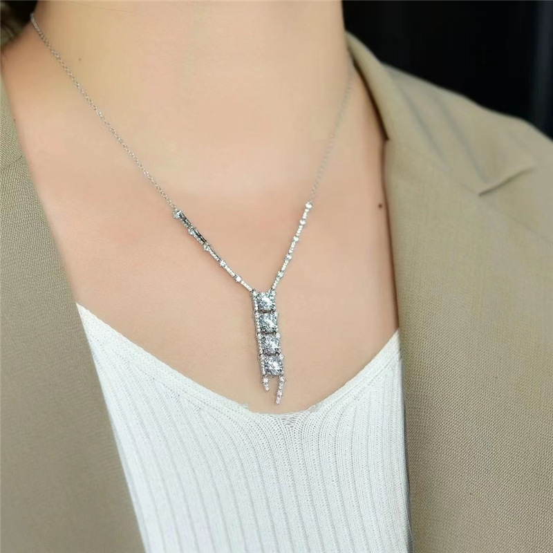 クロスボーダーの新型莫桑石のネックレスの女性925純銀の大衆の設計の高級な晩餐会の女性の豪華なドリルのチェーン