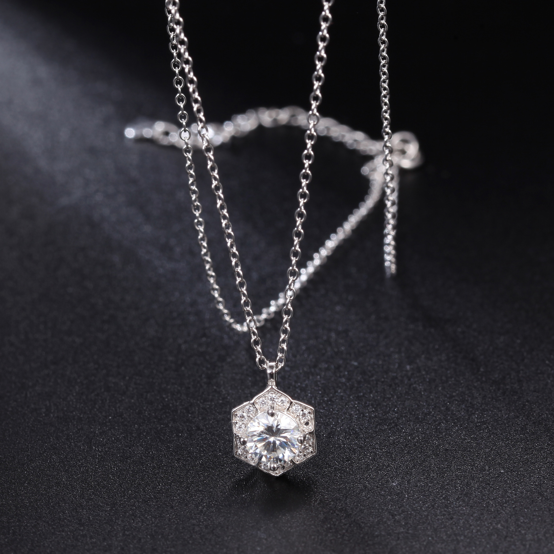 莫桑のネックレスの女性莫桑石のネックレスのカップルの鎖骨のペンダントの女性の純銀のD色のS925はいっぱいはめ込みます。