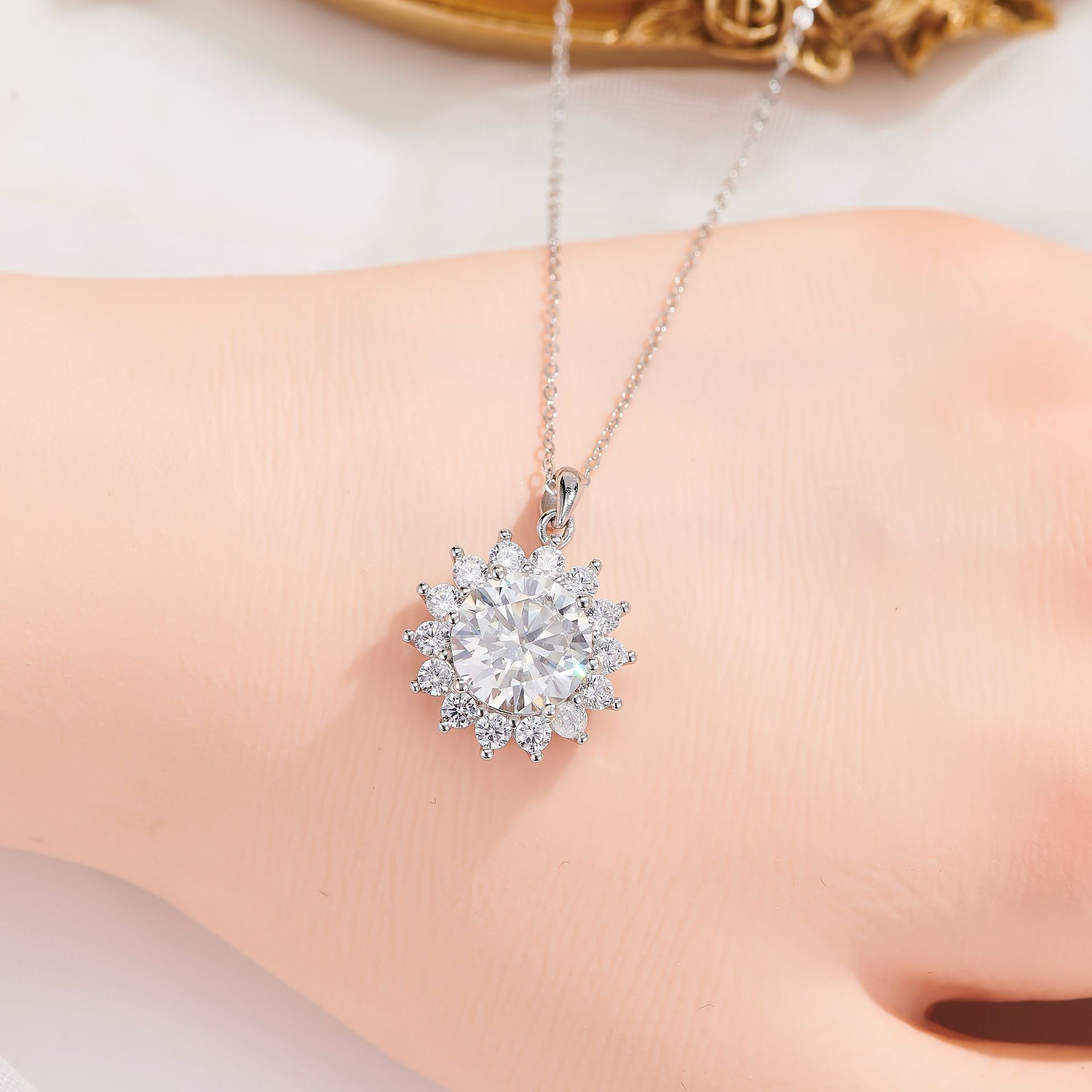 越境してよく売れている太陽花莫桑石S925純銀の鎖の女性のきらきらと輝く太陽の花のネックレスのペンダントは超きらきらと豪華です。