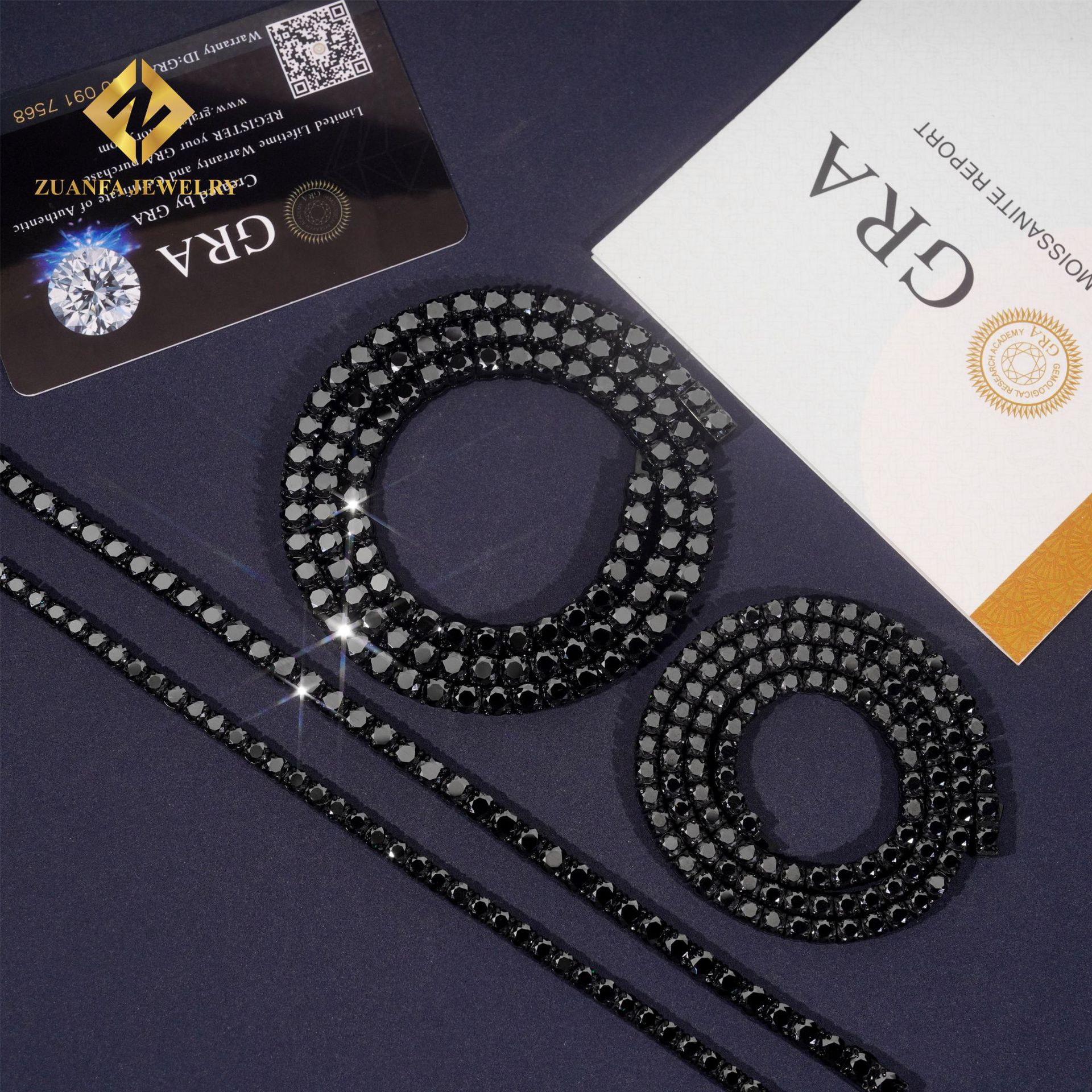 欧米316Lメンズヒップホップネックレスステンレスメッキ黒石莫桑石テニスチェーンTennis chain