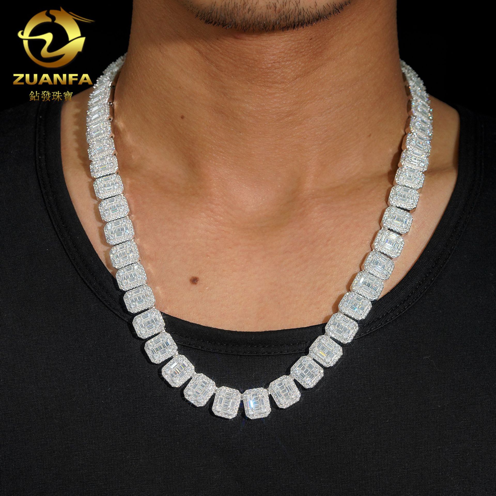 Hiphopキラキラ欧米のクロスボーダー925銀満はD色の莫桑石のスキューバチェーンの13mmの男子学生の高級なネックレスをはめ込んでいます。
