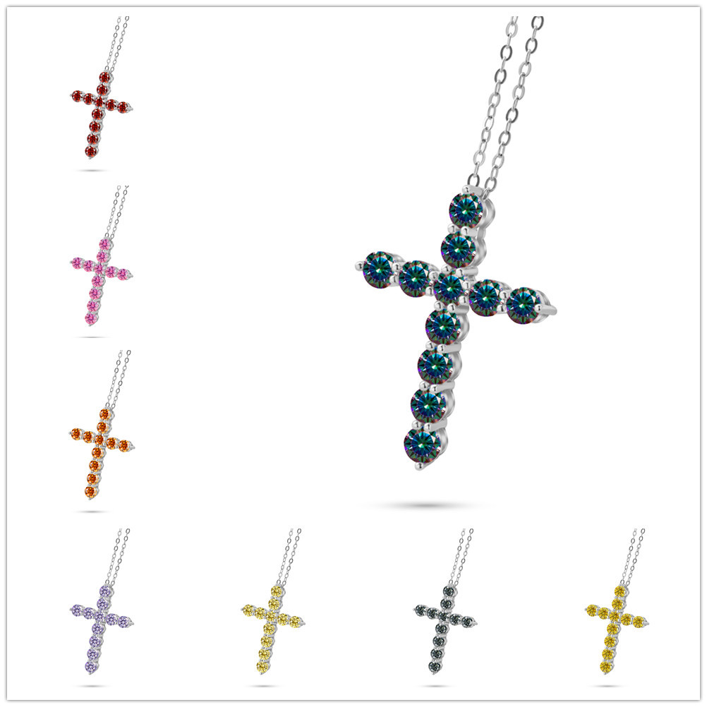 3mm-4mm原色青莫桑石クロスネックレス女性純銀軽豪華鎖骨ネックレス尚クロスペンダント
