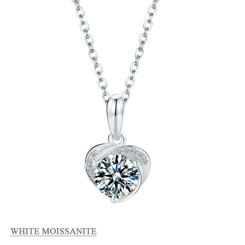 レジャー風ハート型1クラモサン石ペンダント証明書付きs925純銀製カラーモサン石ネックレスプレゼント