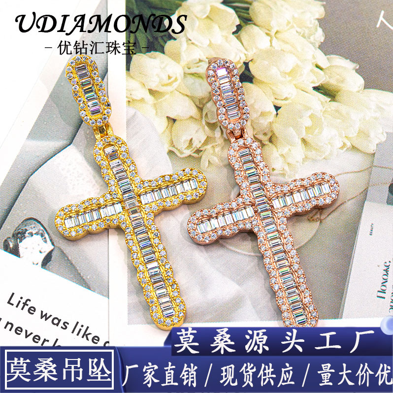 クロスボーダー新型s925銀クロスペンダント男女同モデル欧米ヒップホップ長方形莫桑石ペンダントネックレス