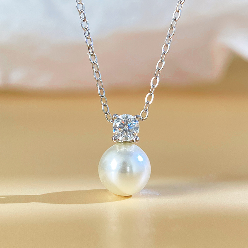 S925純銀真珠ペンダントD色莫桑石真珠ネックレスファッション通勤精致起爆施家真珠
