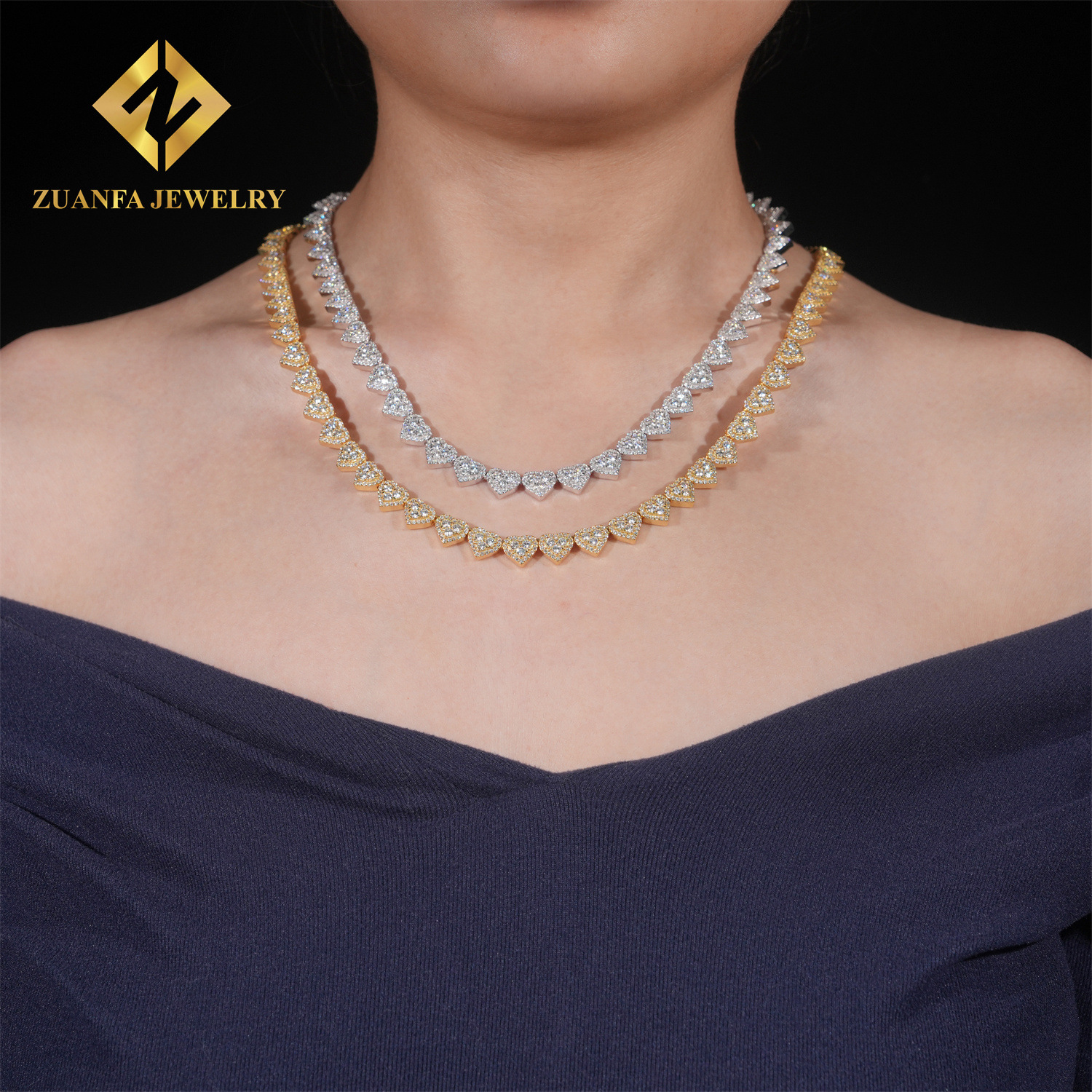 欧米風ヒップホップジュエリーS925シルバー製モアサナイトハート型テニスチェーン重ね付けトレンドネックレスカップル愛の証越境