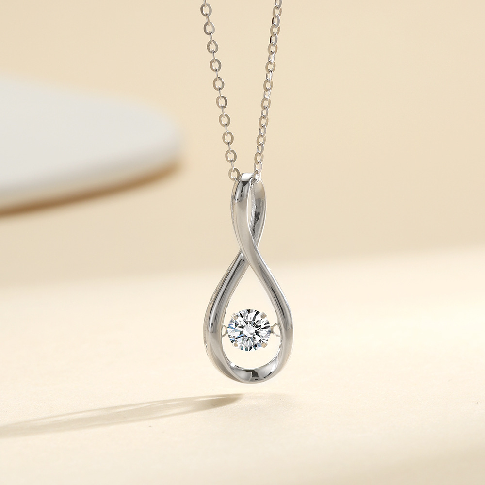 純銀S925莫桑ドリルネックレス8字鼓動の心50分D色莫桑石女史小衆ファッション水滴