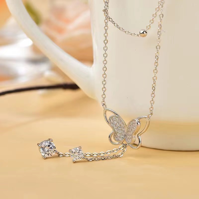 ダイヤモンドのネックレスの女性の莫桑石の二層の満天の星の蝶の一体のチェーンのウェディングドレスの鎖の鎖の証明書の卸売り