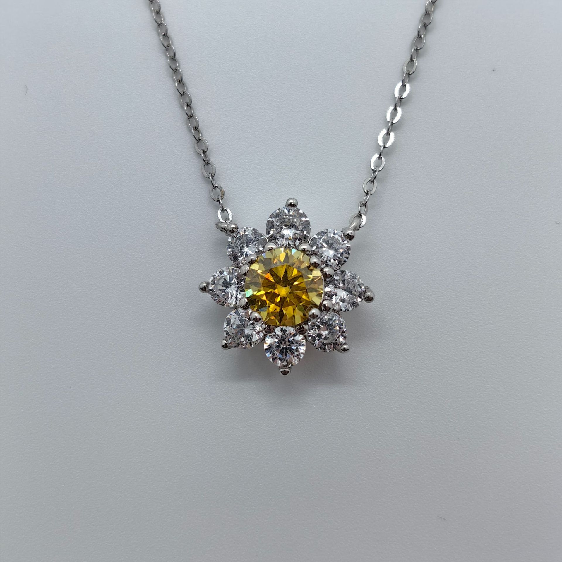 国境を越えた爆発金925銀ネックレス黄色莫桑石太陽花ネックレス洗練されたファッションは莫桑ドリルネックレスをはめ込んでいる