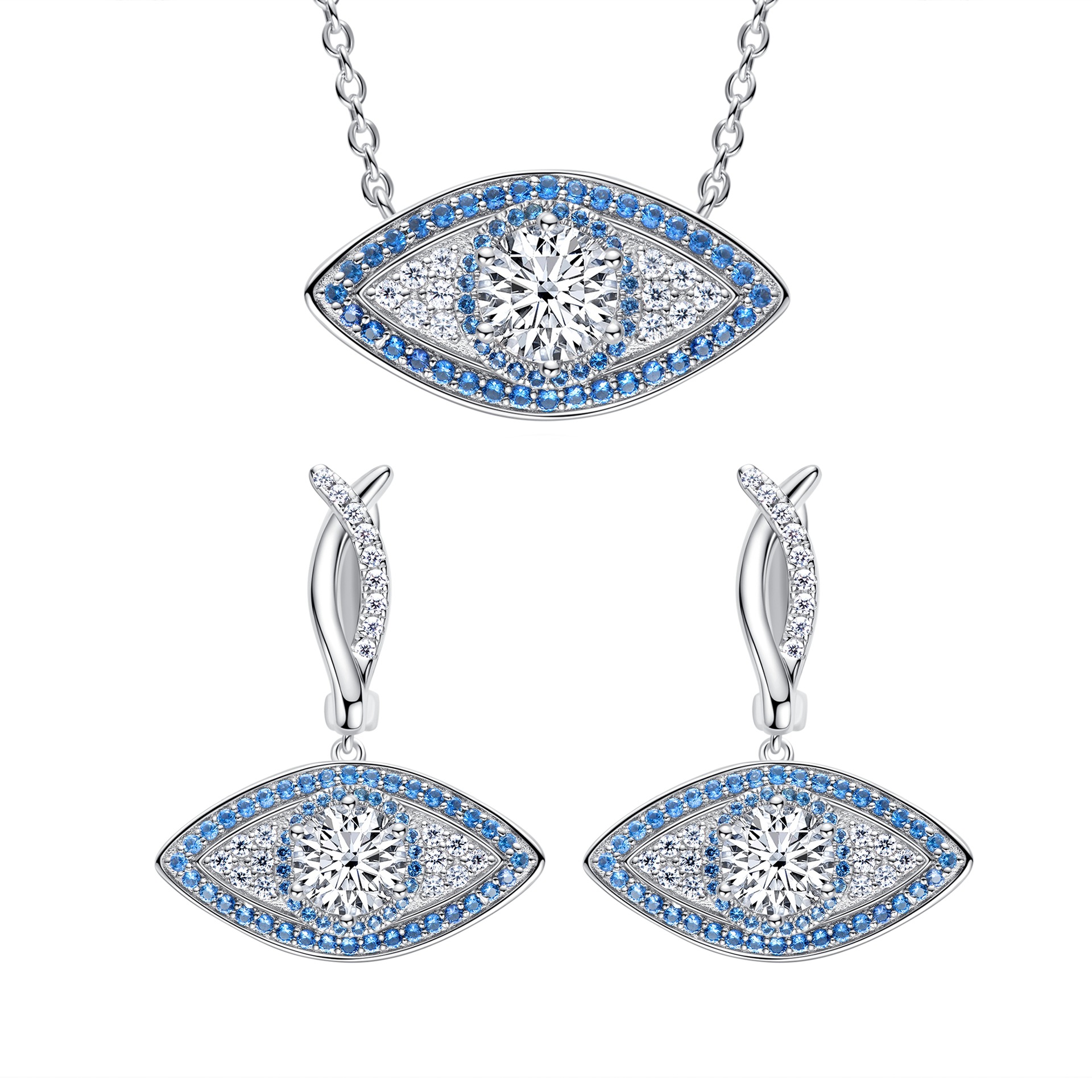 ANUクロスボーダー人気欧米S925純銀1カラット莫桑石ネックレス円形邪悪魔の目ペンダントピアス