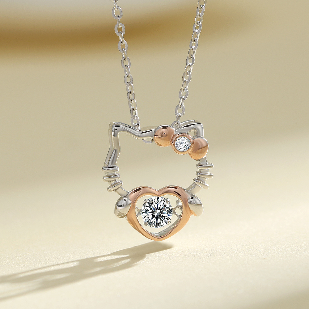 純銀S925莫桑ドリルkt猫ネックレス色別メッキ鼓動の心30分霊動D色莫桑石卸売り