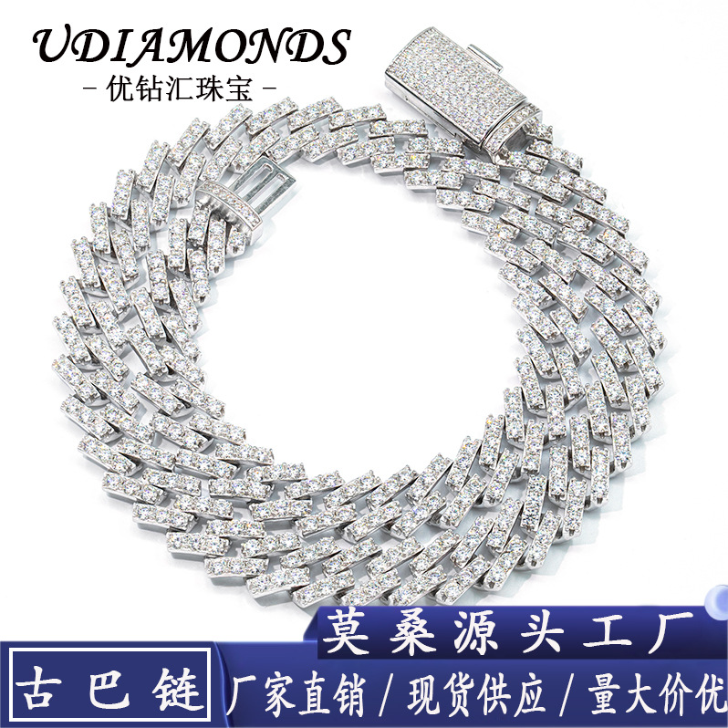 国境を越えたアクセサリー13mm925銀ネックレスvvs莫桑石ヒップホップスキューバネックレス熱売アクセサリー街頭個性金