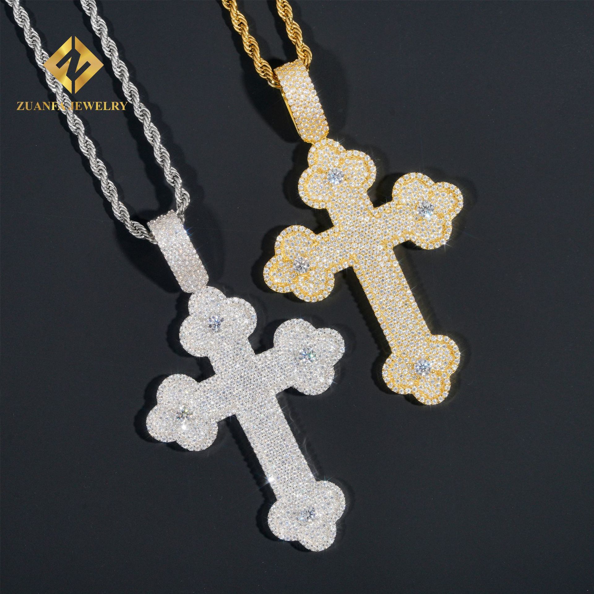 欧米のヒップホップの新型S925銀はD色の莫桑石のクロスのペンダントの単ペンダントをはめ込みます。