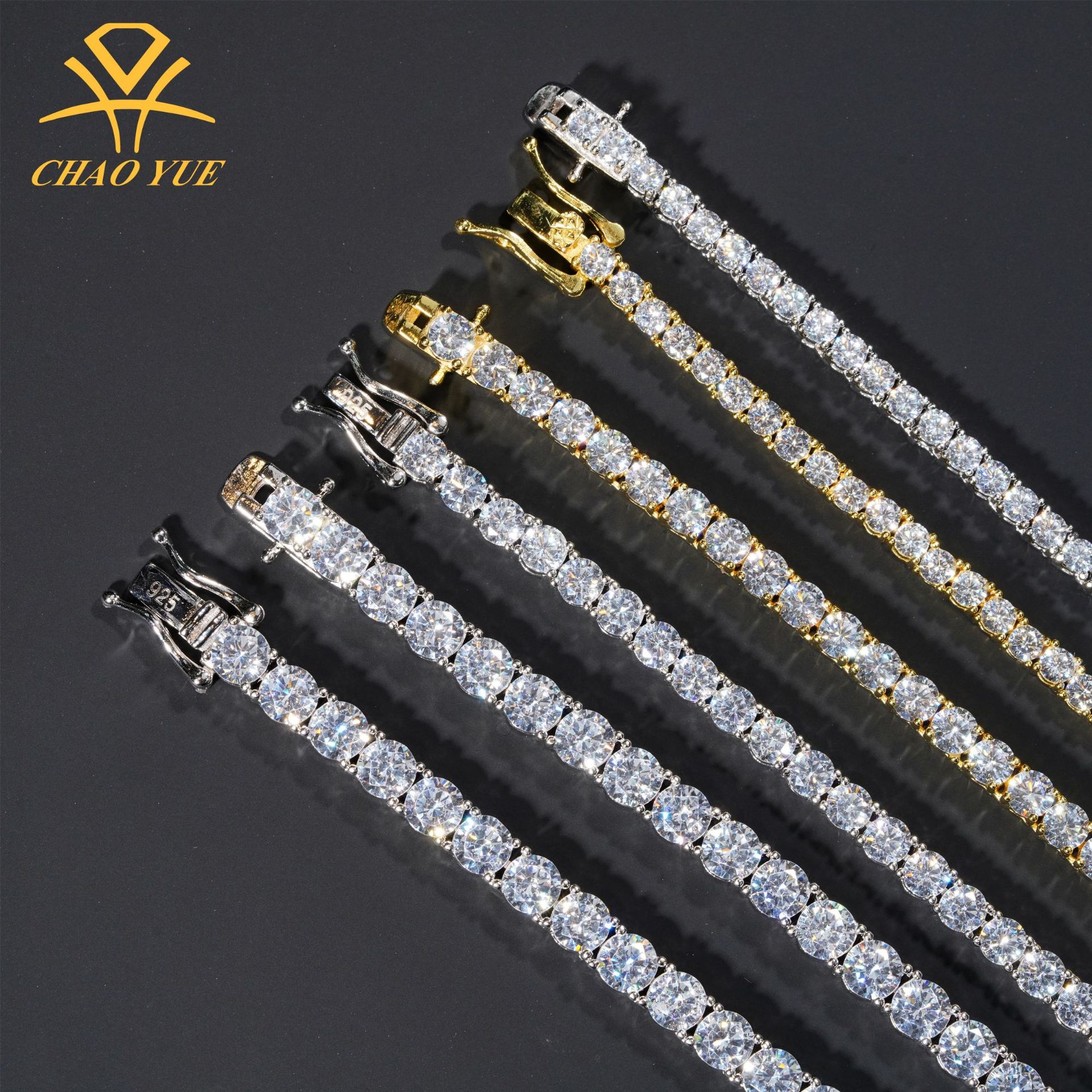 欧米の2mmの人気s925銀はD色の莫桑石のテニスのチェーンの個性のファッションの単列の石の男女のブレスレットのネックレスをはめ込みます。
