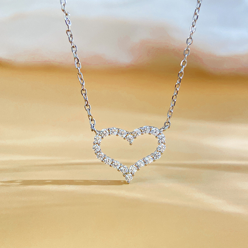 クロスボーダー起爆S925純銀ネックレス莫桑石ドリル愛ネックレス古典的なかわいいモザイク女性ネックレス