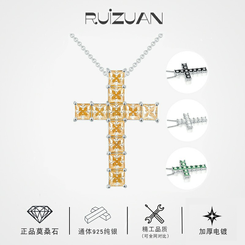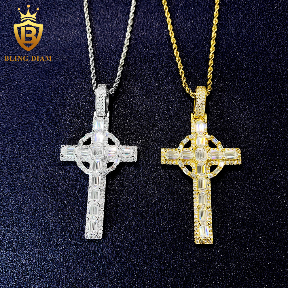Hiphopアクセサリークロスボーダー热い贩売925シルバー莫桑石ペンダントヒップホップクロスペンダント欧米トレンド