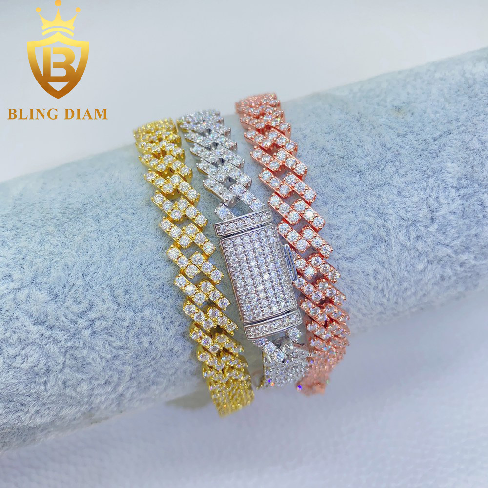 欧米のINSがよく売れている15mm幅の2色S925銀満は莫桑石スキューバチェーンのヒップホップネックレスのブレスレットをはめ込んでいます。
