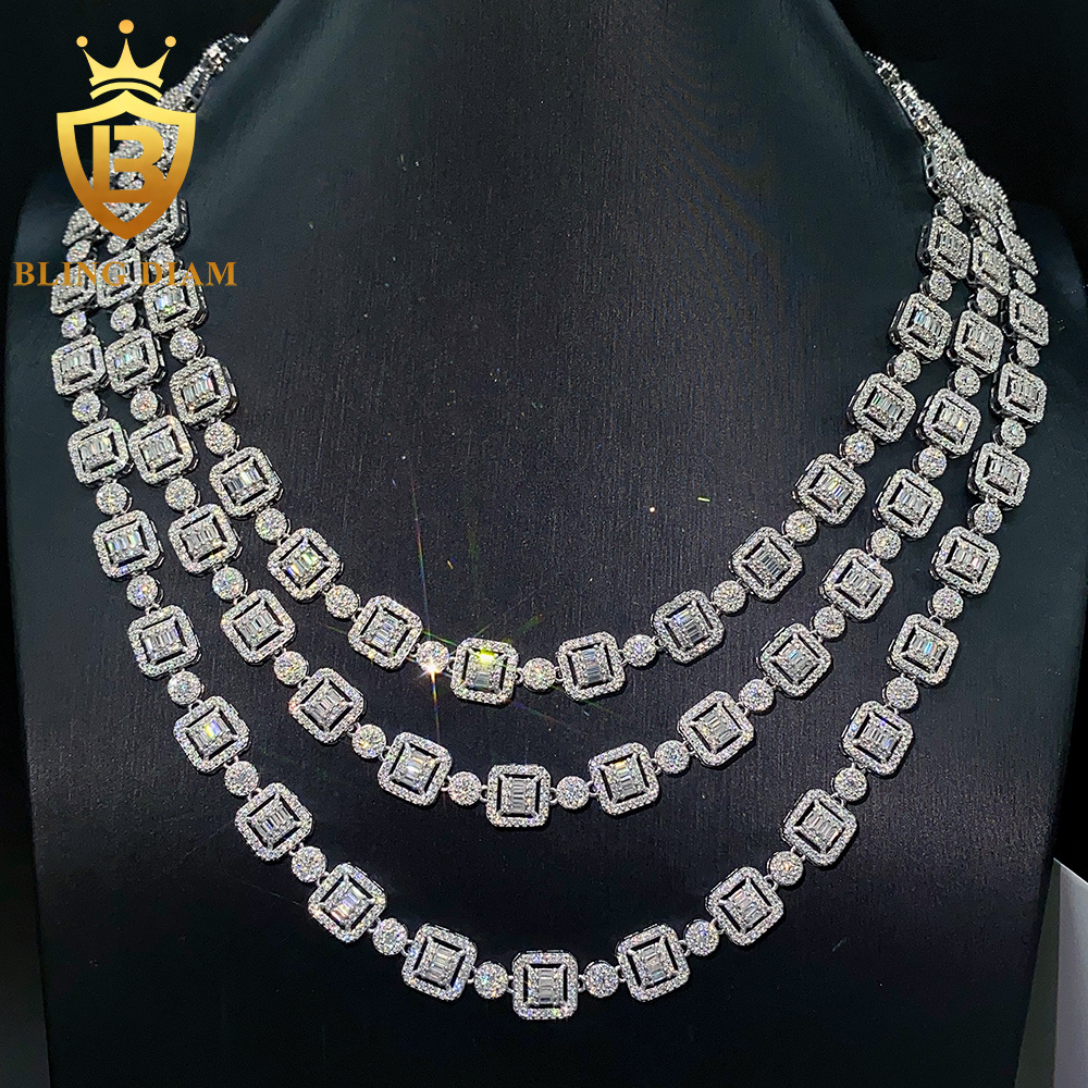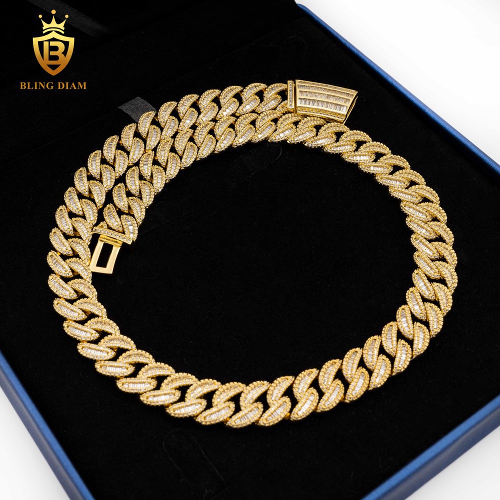 欧米のINSがよく売れている15mm幅のS925銀は莫桑石のスキューバチェーンのヒップホップネックレスのブレスレットをはめ込んでいます。