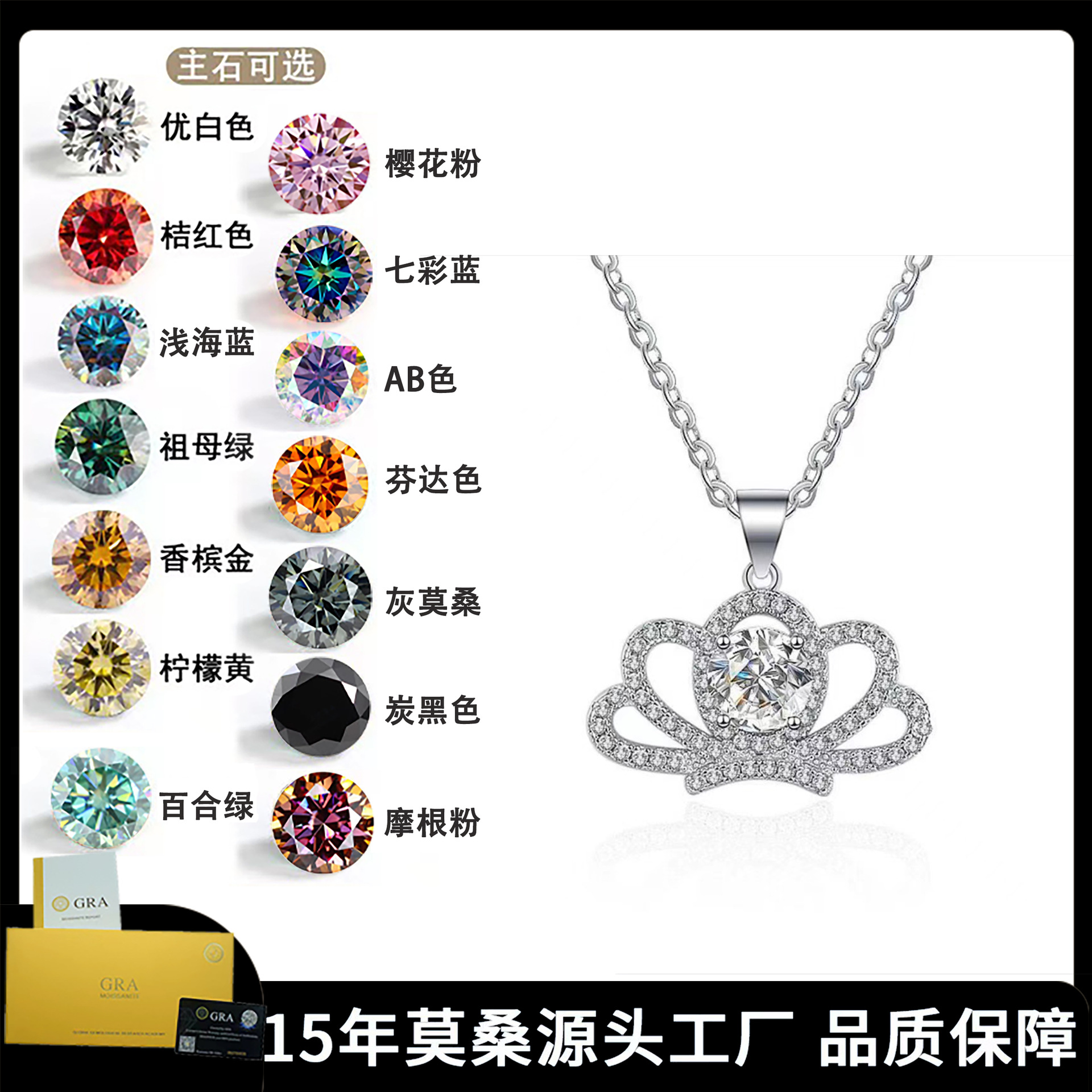 震え音がよく売れているs925銀皇冠1カラットinsネット赤シンプル感が落ちない莫桑ドリルネックレス
